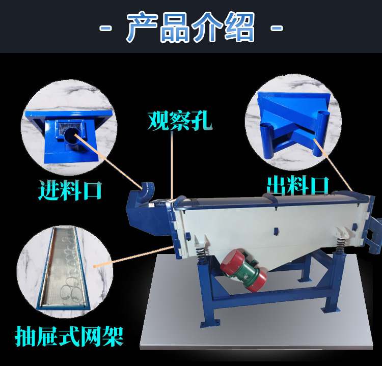 直線振動篩迫使物料在篩網(wǎng)上被拋起向前做拋物線運動,以不同的篩網(wǎng)過濾達到篩分目的。具有高產(chǎn)低耗、自動卸料等特點,適合流水線作業(yè)。